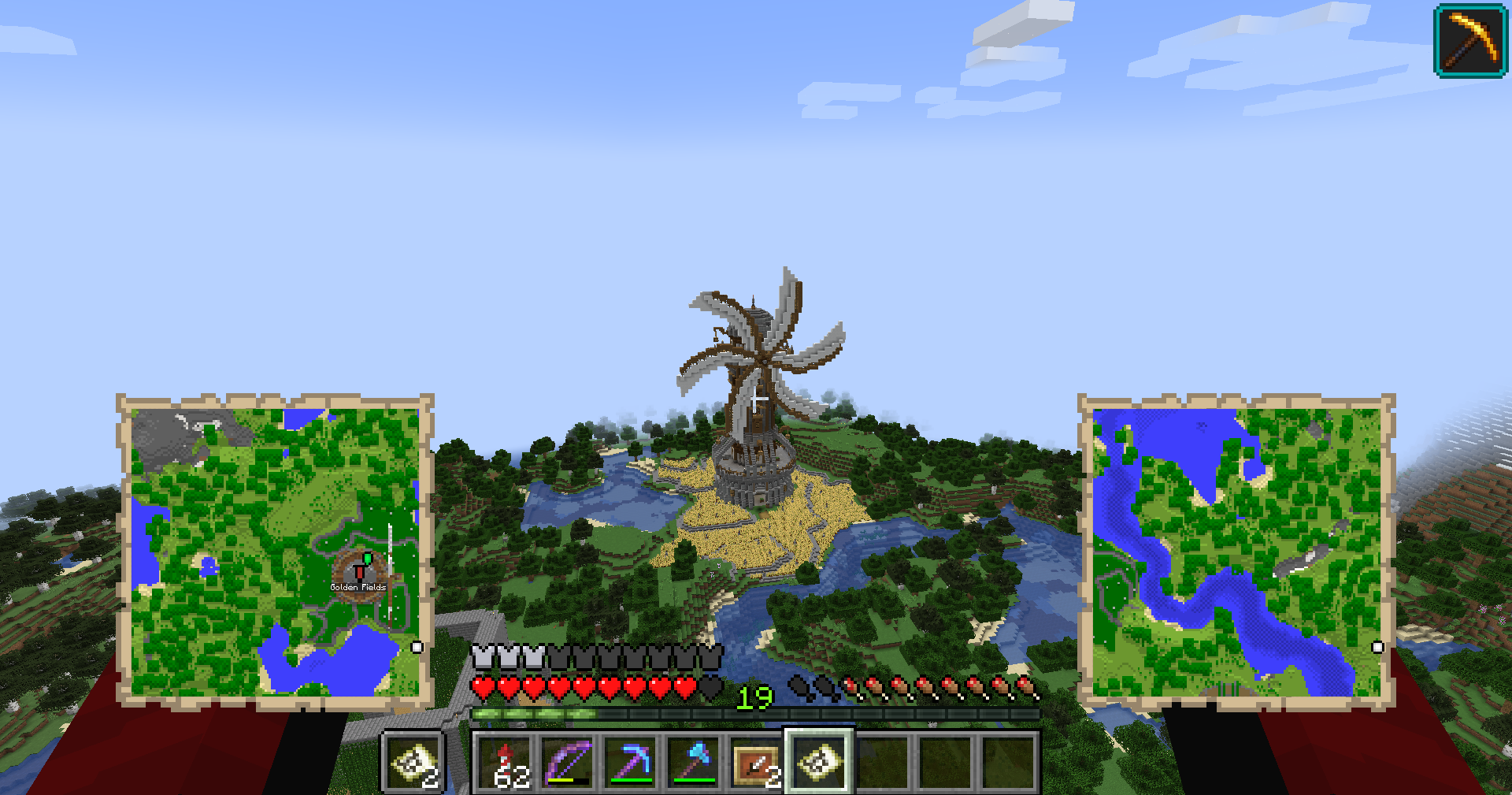 Built Captain JEK's windmill from https://www.planetminecraft.com/project/six-winged-windmill/
