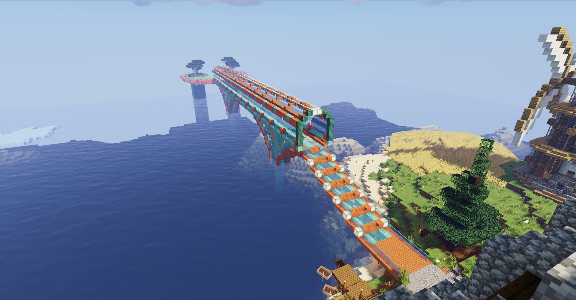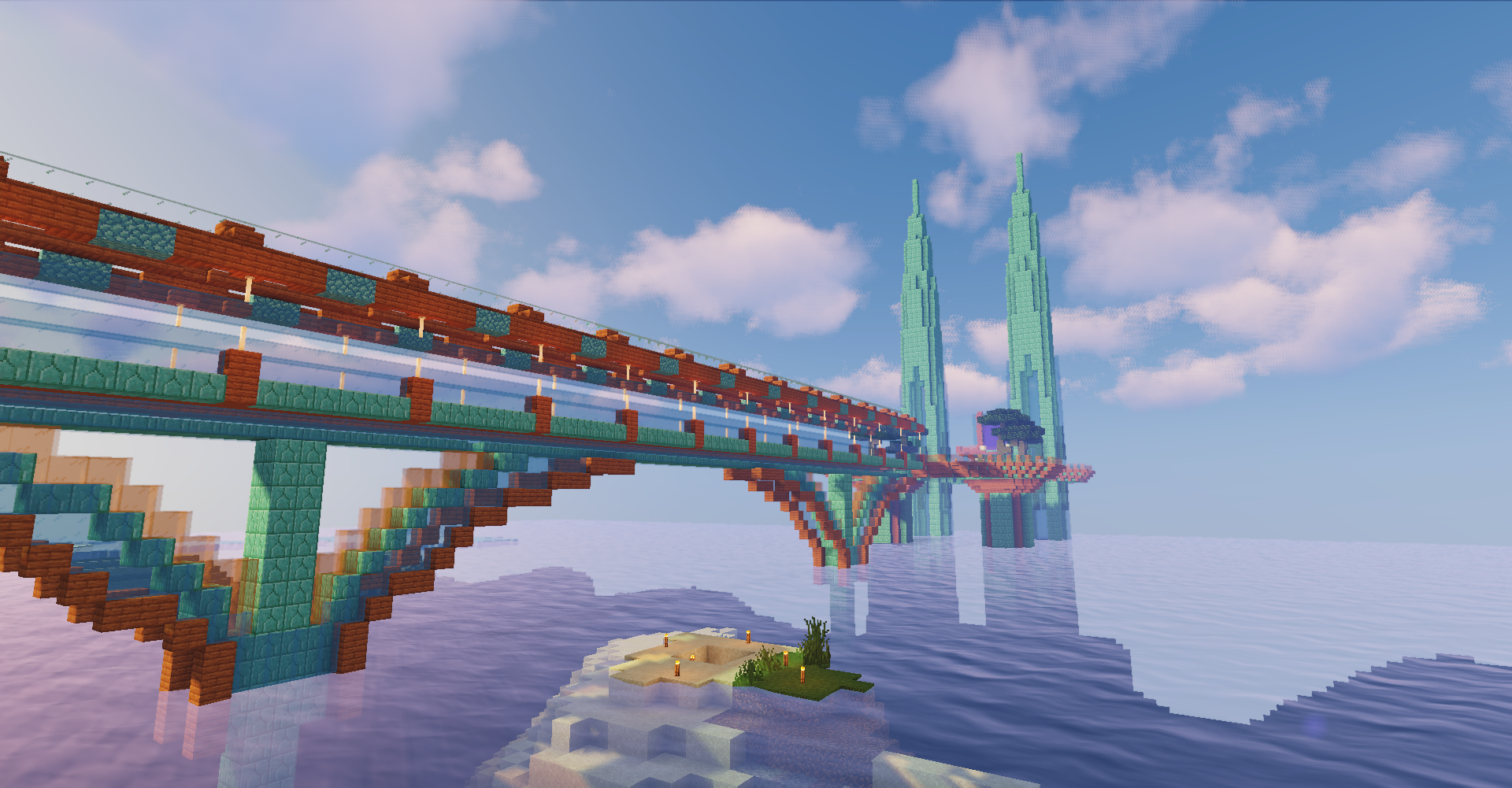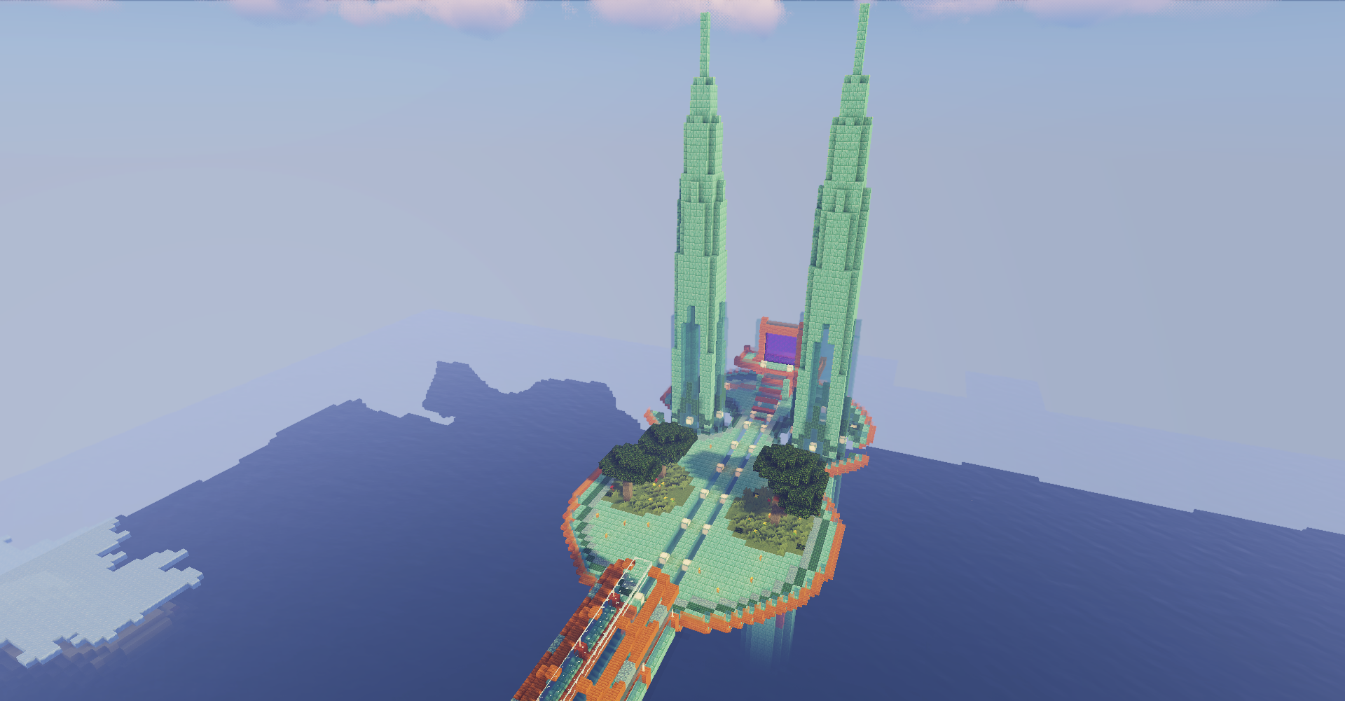 My nether portal platform with towers and bridge.